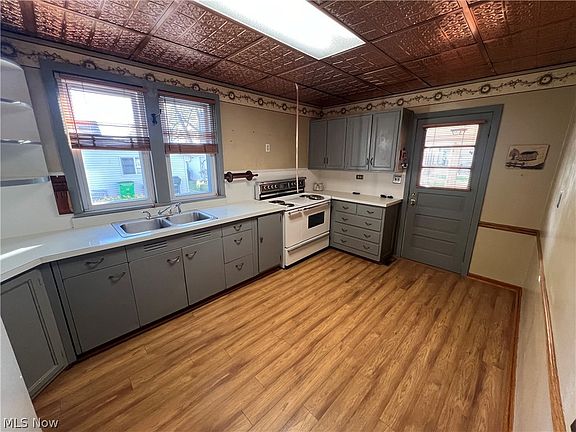 2-3 bedroom, 2 bath home. New carpet throughout. Large enclosed front porch. Kitchen includes range and refrigerator. Main floor laundry room. Main floor bath features walk in shower. Vinyl replacement windows throughout. Enclosed rear porch. 2 car garage with paved parking. Deep, level lot.