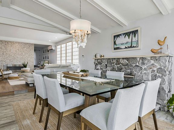 WELCOME TO 435 EAST DR, COPIAGUE IT'S NOT TOO LATE TO RENT YOUR WATERFRONT HOME BEFORE YEAR-END! This sleek & beautifully updated home offers an open layout that flows seamlessly between the living room, great room, dining room, and kitchen. The kitchen features abundant cabinetry, an island with seating, quartz counters, a mother-of-pearl backsplash, and top-of-the-line appliances including a built-in wine cooler. A wood-burning fireplace and an electric fireplace create a warm, inviting atmosphere, while a vaulted ceiling with wood posts add to the charm. Double French doors provide stunning water views year-round.