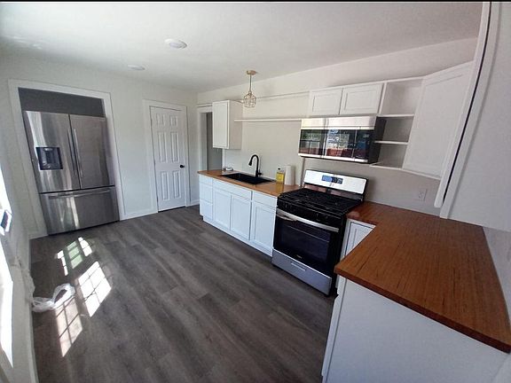 - Gas stove and butcher block counters