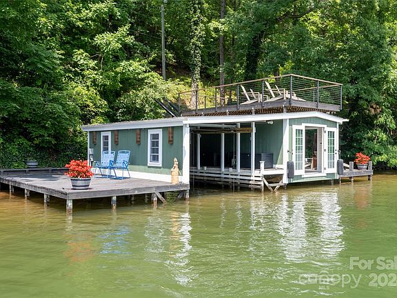 BOAT HOUSE + 102 FEET OF WATERFRONT + DOCK SPACE + GAS FIRE SCULPTURE + INDOOR LOUNGING + ROOF TOP DECK = A UNIQUE PROPERTY FOR ENTERTAINING AND ENJOYING THE WATER AND SCENERY OF LAKE LURE.