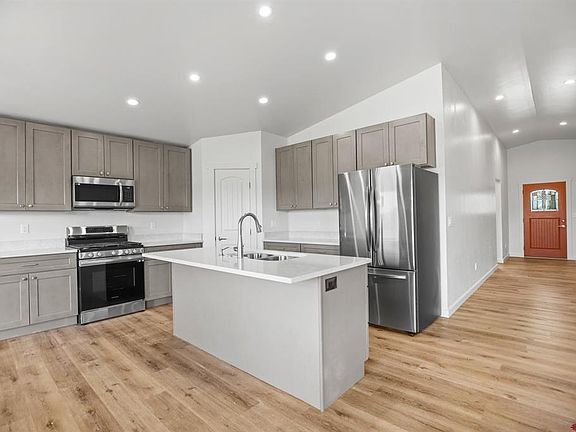 New Construction home with 3 bed 2 bath and 2 car garage near Hawkins Preserve! You will be greeted with a vaulted ceiling leading into the main open concept living area with beautiful LVP flooring. The kitchen is nice and open with modern shaker cabinetry, quartz countertops, stainless steel appliances and a pantry! The livingroom has lots of natural light and faces the scenic view of the Mesa Mountains. Next to the kitchen is a pop out dining room that leads to the covered back patio where you can enjoy watching the sunrise in the mornings or BBQing with friends and family in the evenings. The two guest bedrooms are carpeted and share a full sized bathroom with luxury vinyl plank flooring. Across the home is the Master bedroom with carpeted flooring, has it's own private bathroom with LVP flooring, quartz countertop and a standup shower with a large custom walk-in closet for all your needs. From the master closet you can conveniently access the laundry room. This home is close to town and conveniently near public schools, Hawkins Preserve, grocery stores and restraunts. Call and schedule a tour today!