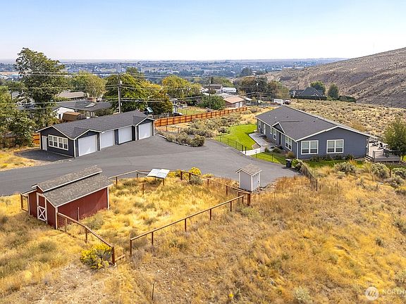 Luxury 6.5 acre Ranchette Country Estate you've been searching for, offering privacy, thousands of dollars in lower county taxes while sitting amidst an established city neighborhood. The centerpiece is a 2,800 sq ft luxury factory-built home designed for high end comfort incl 755 sf deck w/hot tub & city/mountain views. But the value extends far beyond the main residence by offering an ideal setup for hobbies, animals and storage: fully heated 4 car, 1,300 sf garage with 2 EV ports; equestrian/animal ready with dedicated barn (with power), multiple fenced areas; Full hookup paved RV space. Enjoy the freedom of unrestricted acreage with turnkey luxury infrastructure paired with the sheer convenience of nearby schools & shopping.