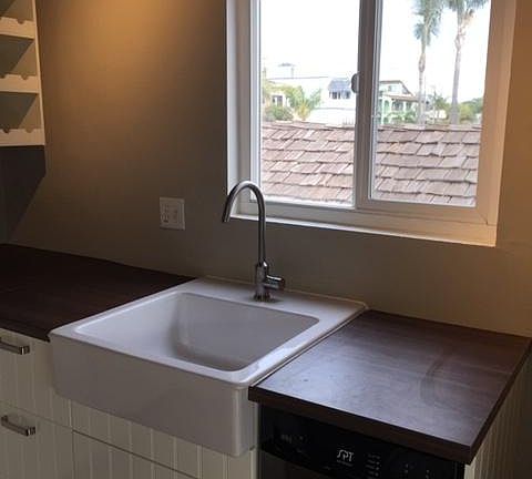 Live in one of Californias most beautiful beaches and just THREE BLOCKS FROM THE BEACH! This Townhouse style apt is a 3 story split level with large bedrooms and 2 full baths, wood floors, wood and beamed ceilings in upstairs , washer dryer , stove, dishwasher and fridge. 1 Garage parking space and one tandem driveway. This townhouse apt is very clean and open. Panoramic view from a large shared rooftop deck off the living room. Top floor has Large Livingroom and open kitchen, mid split level has two bedrooms and 1 full bath, lower floor has a private entrance with one large bedroom and private bath. We are looking for a quiet, responsible tenant(s) with good credit. Deposit is negotiable with excellent credit. NO Dogs. THANK YOU 2 off street parking : 1 spot in double shared garage on Monterey side of building and one tandem drive way spot owner pays water / gardner and trash Two bedrooms upstairs with one bath and one large master bedroom with full bath on bottom floor