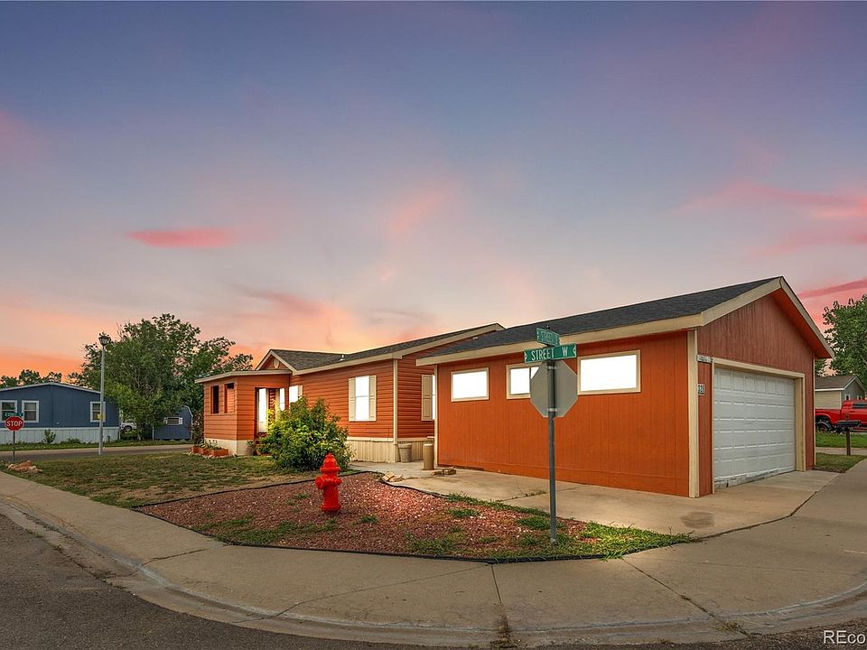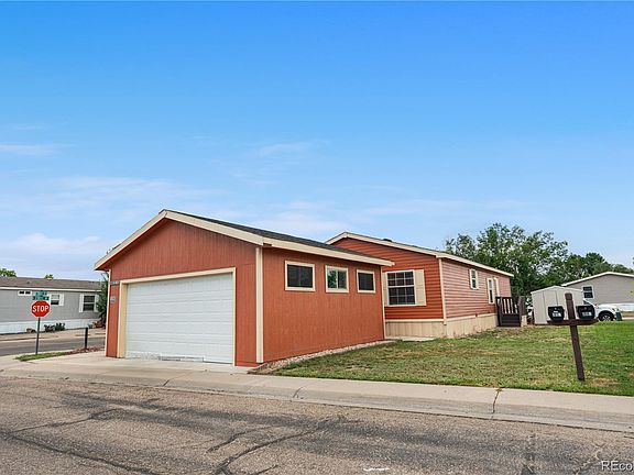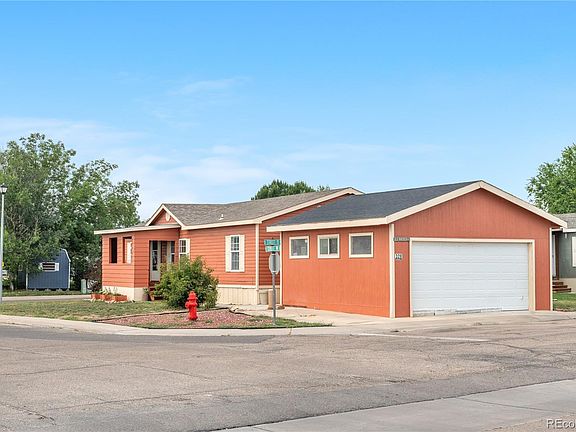 $1000 to Buyer at Closing from Seller credit! Welcome into this spacious & well-kept 2011-built home with 3 bed, 2 bath, 1344 SF home is located in an all-ages community & has a 2-car detached garage, 1 off-street parking space, & a storage shed! Pets allowed with approval. $973/month Lot Rent includes access to pool, basketball court, fishing pond, club house, picnic area/pavilion, horseshoe court, community events. Financing Available with 5% down payment. Situated on a larger, corner lot with a covered porch providing shaded, outdoor living space. Several rose buses adorn the exterior. Inside greets you with a clean, open, & functional layout that allows in plenty of natural light & has larger rooms. All appliances, washer & dryer included; well-appointed kitchen with plenty of cabinets and storage, mini fridge & pantry. Vaulted ceilings, tile and laminate floors, & neutral colors. Home well-kept. Primary bedroom has a 7x5 walk-in closet & full primary bath attached. Located just 4 miles from vibrant Downtown Greeley, full of activities and local dining spots. Let me help you make your dream of home ownership within this community a reality!