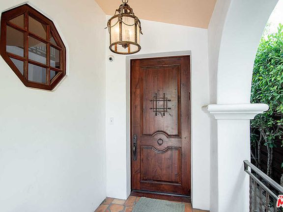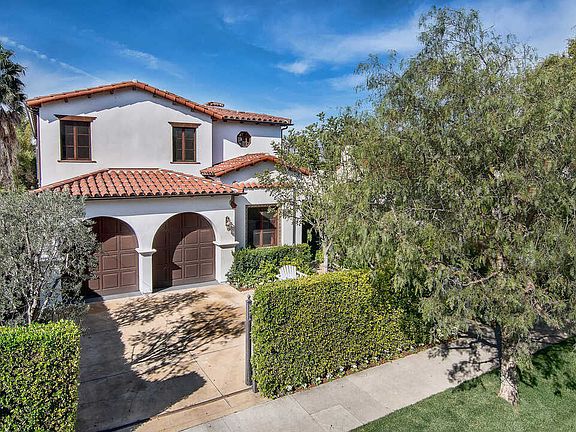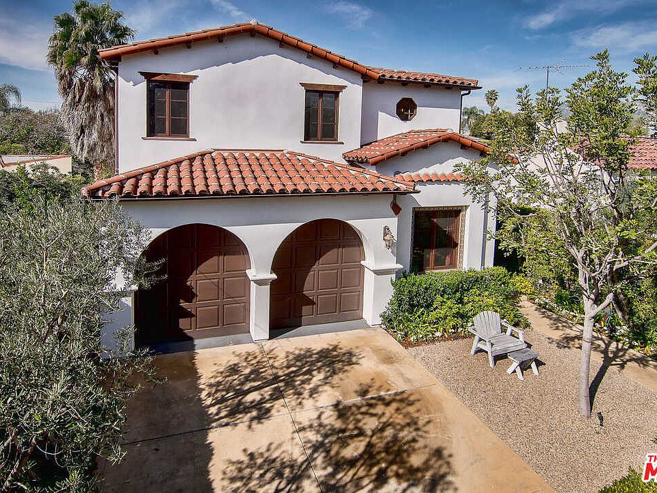 Fully furnished turn-key charming and private contemporary Spanish in North Beverly Grove. This two-story home features four bedrooms and four bathrooms, gorgeous hardwood floors, marble countertops, formal dining room, living room with grand fireplace, and French doors that lead out to an entertainer's loggia with gas fireplace and exposed wood beams. The outdoor space also includes a custom made outdoor kitchen, a pool, and spa, and is entirely gated and hedged, creating a private oasis ideal for entertaining and relaxing. The chef's kitchen includes high-end appliances, extensive granite countertop space, spectacular island, custom made cabinetry. Three huge second level bedrooms including master all ensuite with walk-in closets. A/V system, security cameras, sound system throughout, two-car attached garage. This gated and secure professionally designed home is close to the most desirable shops and restaurants in the heart of Beverly Grove.