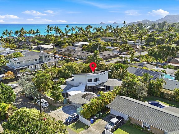 Island Living at its best — Just One Block from Kailua Beach on the corner of Palapu Street. Step into this one-of-a-kind 4-bedroom, 3.5-bath contemporary island home featuring vaulted ceilings and 2,936 sq.ft. of bright, open living space, all enclosed on a 10,000 sq.ft. lot. Relax or entertain around your solar-heated pool with both covered and open lanais—perfect for seamless indoor/outdoor living. This property includes a 3-bedroom, 2.5 bath main home, with most living areas on the main level. The private upstairs primary suite offers a peaceful, ensuite retreat away from the main living spaces. In addition, there is an attached 1-bedroom, 1 bath with a kitchen that can be used as a rental or mother-in-law suite. Move-in ready with 30 owned PV panels (NET metering), split ACs in every room, luxury vinyl plank flooring, an upgraded kitchen, motorized blinds, updated lighting, and more. Additional highlights include two laundry areas, an attached workshop/storage room, a garage, and extra parking. Located in highly sought-after Kailua, close to dining, shopping, and endless watersports—this home delivers comfort, flexibility, and modern island style. Your Kailua oasis awaits!