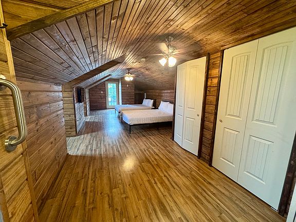Upstairs: 1 bedroom with two queen beds, full bath, and access to an upper deck.