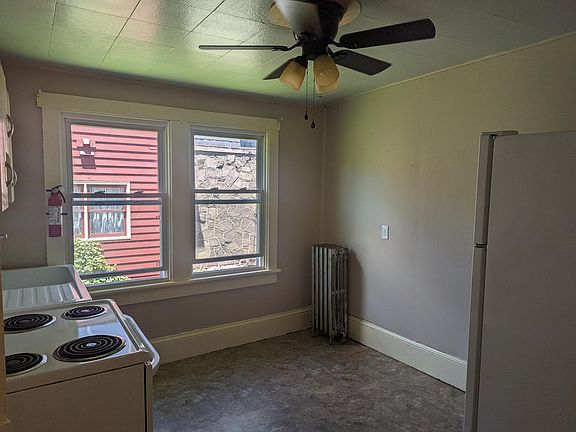 One bedroom, one bathroom, 2nd floor apartment in a large Victorian house. Freshly painted, new carpets, new windows, ceiling fans in every room. Stove and refrigerator included. Heat included in rent. Close to bus routes. Quiet neighborhood. Large backyard. Owner pays heat, water, sewage, and regular garbage. Tenant pays electric, cable, internet, phone or other desired services. Tenant must remove all trash to the trash containers weekly. Free street parking out in front of the house. Some small pets may be allowed with possible fees and deposit. No smoking. Deposit and first month rent due at lease signing.