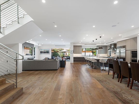 This newly reimagined modern tour de force soars above the city lights on a quiet street in West Hollywood. Gates open up to the front of this elegant estate. Capturing breathtaking city-to-ocean vistas, this masterpiece showcases voluminous living spaces, unprecedented finishes, and views. Designed for entertaining, an open floor plan is highlighted by towering ceilings and glass doors opening up to a resort-caliber pool, spa, and entertainers terraces. A sprawling great room with a fireplace flows to the dining room and sophisticated chefs kitchen with Wolf appliances. The master suite is replete with a private terrace, showroom closet, exquisite bathroom, with an additional three guest bedrooms, as well as a media room with a huge fabulous roof deck!