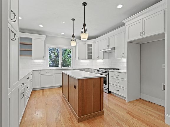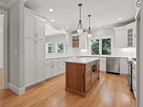 - Features: Closet/Cabinets - Custom Built, Flooring - Hardwood, Window(s) - Picture, Countertops - Stone/Granite/Solid, Countertops - Upgraded, Kitchen Island, Breakfast Bar / Nook, Cabinets - Upgraded, Open Floorplan, Recessed Lighting, Stainless Steel Appliances, Lighting - Pendant, Crown Molding