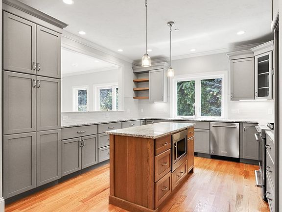 - Features: Closet/Cabinets - Custom Built, Flooring - Hardwood, Window(s) - Picture, Dining Area, Countertops - Stone/Granite/Solid, Kitchen Island, Cabinets - Upgraded, Open Floorplan, Recessed Lighting, Stainless Steel Appliances, Lighting - Pendant, Crown Molding