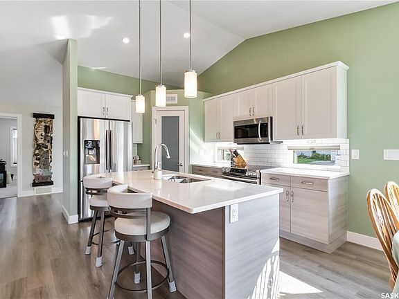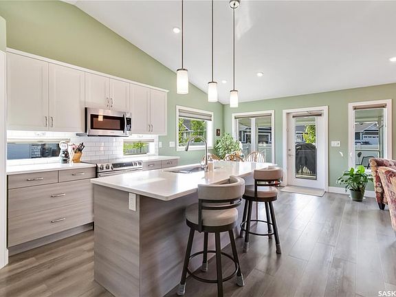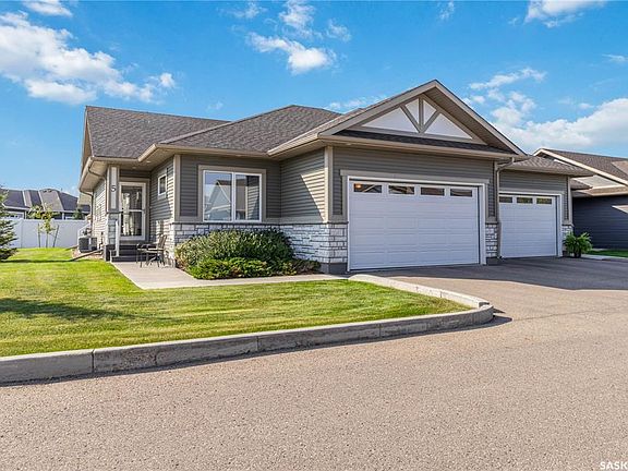 Welcome to #5-435 Palmer Crescent in Warman, a highly desirable bungalow with views of the Legends Golf Course. Situated at the end of the row, this meticulously cared for home offers privacy with no neighbors on one side or behind. The condo is filled with natural light and features a south-facing covered deck. The modern and spacious kitchen boasts extra windows, quartz countertops, a pantry, vaulted ceilings, and an upgraded stainless steel appliance package. The dining area offers golf course views and room for a large table. Down the hall, you’ll find a bedroom, a 4-piece bath with vaulted ceiling, a spacious primary suite with a walk-in closet and 3-piece bath, and a laundry room with built-in cabinetry. The fully developed basement, finished by the builder, maintains consistent quality and finishings throughout. It includes a large family room with gas fireplace and built-in shelves. room for a gym, as well as a bedroom, an office (that can easily be converted into a 4th bedroom), a 3-piece bath, and a generous storage/furnace room with utility sink. The garage is fully insulated and comes with a workbench and shelving. Step outside onto the covered deck to enjoy the peacefulness of this quiet complex. Other features include custom blinds, central air, ng bbq hook-up, granite countertops and undermount sinks in all bathrooms. Over $30,000 in upgrades have been invested in this beautiful home. With walking trails and the golf course nearby, this bungalow is the perfect forever home. Dogs allowed with board approval.