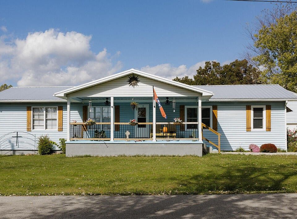 Unbelievable transformation .. tastefully and beautifully completed interior for an amazing modern look and feel...comfortable living, open concept...interior w/upgraded floor covering, all interior walls & ceilings painted, new toilets in baths, some new windows in front, covered front & rear decks,, new deck railing on front, recent metal roof on home, garage & storage bldg. , new garage door, partially finished basement room w/gas wall burner in place (previously used for additional sleeping area) partially fenced back yard, detached garage w/new overhead door & loft (fully insulated for storage) , detached workshop/storage bldg, In town for convenience to shopping, medical, dining, etc. Note:/ Washer & Dryer, Refrigerator currently in house, and Dehumidifier do NOT convey Sellers will provide another refrigerator