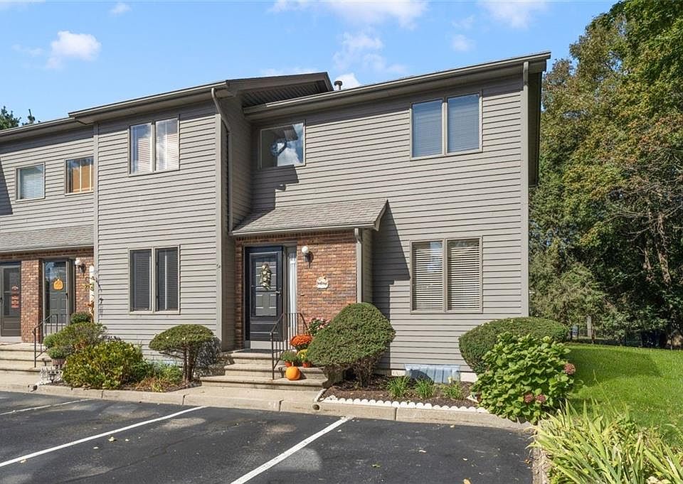 This approximately 1,140 square foot condominium/townhouse features two bedrooms and one and a half bathrooms. The home offers a stainless steel appliance package, a view of the pond, an end unit layout, updated granite kitchen, hardwood floors throughout, a first-floor half bathroom, and a deck. The primary bedroom is a comfortable size with ample natural light. The additional bedroom is well-proportioned and could accommodate a variety of furniture arrangements. The full bathroom is tastefully appointed, while the first-floor half bath provides added convenience. The kitchen showcases modern granite countertops that complement the stainless steel appliances, creating a cohesive and updated aesthetic. Hardwood floors flow seamlessly throughout the living spaces, adding warmth and character. The end unit location provides extra privacy and allows for abundant natural light to fill the home. Stepping outside, the deck offers a peaceful place to enjoy the tranquil pond view. This home's layout and features make it an ideal living space for a variety of needs and preferences. Priced $359,900