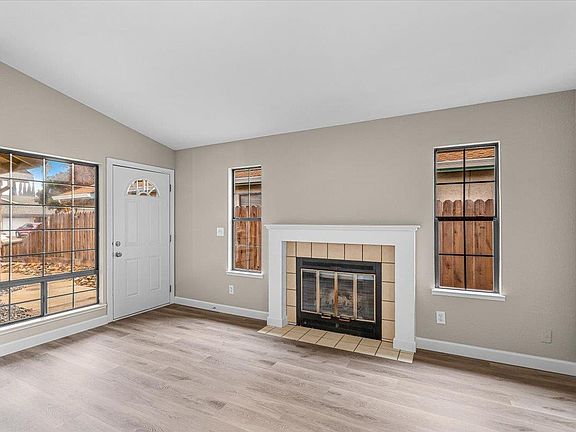 Step into this beautifully updated 3-bedroom, 2-bathroom home, boasting nearly 1,100 sq ft of modern, turnkey bliss. Expansive vaulted ceilings in the living areas and primary bedroom illuminate the space with natural light and add an open, airy ambiance. The new dream kitchen offers plenty of storage. It showcases sleek quartz countertops and crisp white shaker cabinets with soft-close drawers, modern hardware, Stainless-steel large basin sink and new LED lighting. You'll also love the New stainless-steel, Energy Star-rated Whirlpool appliances including a glass top range, dishwasher and microwave/hood combo. The updated bathrooms feature new vanities with quartz counters, LED lighting, stylish new mirrors, updated fixtures. Other standout features include waterproof LVP flooring throughout, wide baseboards, new window screens, security screen doors, a cozy fireplace, a dedicated laundry room, and sophisticated two-tone paint that infuses the home with an inviting, contemporary vibe. The fenced yard is low maintenance and drought tolerant. It also includes motion-detected, solar, landscape lighting and a stamped concrete patio perfect for casual outdoor relaxation. The two-car garage elevates functionality with shelving and a wide pushout space. It's ideal for a hobby workbench or extra storage for bigger items like bikes, tools or a motorcycle. This home is centrally located with easy freeway access for commuters. Enjoy walkable proximity to shopping, transportation, eclectic dining and schools. You're also just minutes away from medical facilities, gyms, the Farmer's Market, downtown, movies and more. VA and FHA offers are welcomed! Affordably priced for first-time buyers or investors.
