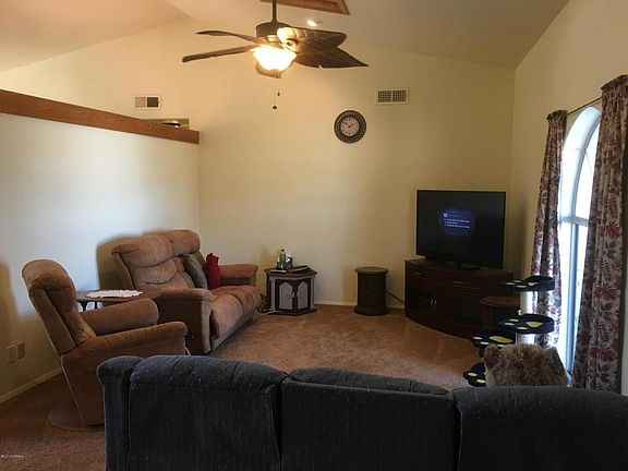 Looking for a home close to town, yet on a private road with spectacular views then look no further! Home features a great split-bedroom floor plan and large useable living spaces and spacious bedrooms. Enjoy the stupendous views of the Mogollon Rim from the back deck. Some of the many improvements are a Life Source whole house water system, a new metal roof, upgraded appliance package, new Mohawk carpet, plus the home has been professionally painted inside and out. So much to see here! The following items do not convey with sale of the home: Swinging doors to the pantry, garage free-standing cabinet, and cloth draperies in the master, dining room and kitchen.