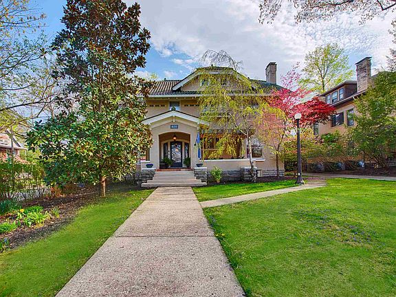 The Sayers House c. 1907 offers one of the most unique pieces of architecture in the Wallace Woods collection. Adorned by a green tile roof and a raised front covered terrace, this home will provide you with a little gem of its history around each turn. This 6 bedroom, 3.5 bath home is filled with natural, original woodwork and features a full set of detailed stained glass upper windows and pocket doors plus a partially finished lower level. A cobblestone drive leads into a raised rear courtyard with an oversized 1 car garage. Come see for yourself why this should be your next home!