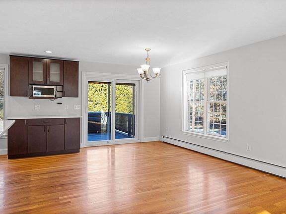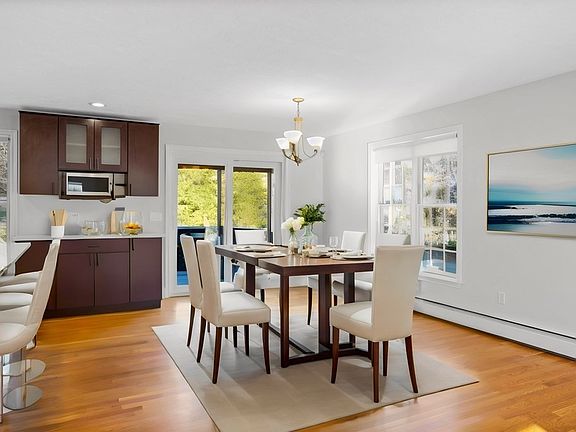 Start your 2024 in this bright, spacious three bedroom home in a neighborhood setting. Natural light pours through the Pella windows into the open, main level highlighting gleaming hardwood floors and newer kitchen! Remodeled in 2022, the sleek and modern kitchen offers plenty of room to cook and dine at the oversized granite topped island with deep sink and extra seating. Stainless appliances include an exterior vented hood and double oven, accented by stylish, tile backsplash and floating shelves. Entertaining inside and out is seamless, the living and dining room spaces offer access to the deck, perfect for grilling and relaxing. More space in the family room with radiant heated flooring and slider to large, fenced in backyard. New luxury vinyl flooring in all bedrooms including main with double closets and ensuite full bath. Office space, laundry and 1/2bath on 1st floor. Great location close to retail, restaurants, commuter routes and town parks and conservation land.