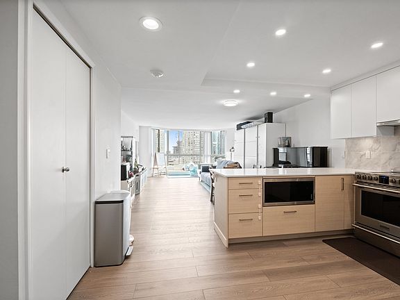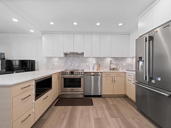 Wide plank vinyl flooringQuartz countersTile backsplashSoft-close cabinetsBuilt-in pantryFrigidaire professional appliancesSpacious open layout