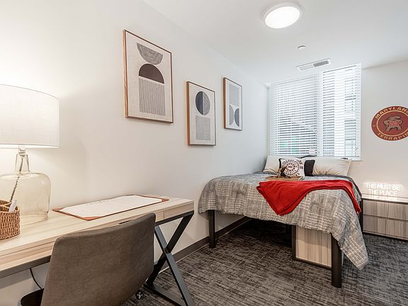 - Exterior features: 10+ retail spaces including Shake Shack and Chopt Salad Co., 50" Smart TV in Each Living Room, Awesome Social Events for Residents, Balcony, Barbecue, Catering Kitchen, Coffee Bar, Energy Efficient Appliances, Exterior Type: Student, Free Printing with PrintWithMe, Full XL Beds, Granite Countertops, High-speed Internet Ready, Individual & Group Study Spaces, Individual Locking Bedrooms, Key Fob Access Control, Night Patrol, On-Site Maintenance, On-Site Management, Package Receiving, Pet Spa for your Furry Friends, Private Bedrooms and Bathrooms, Roommate Matching with RoomSync, UtilitiesPaid