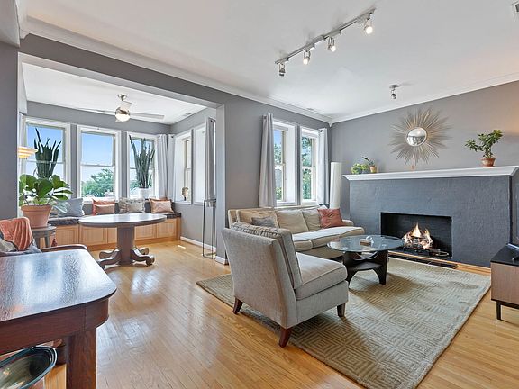 Looking for an ideal situation to own a top floor 2 bedroom condo with 2 parking spots? Look no further! Every room is generously sized and what makes this stand out are the two bonus rooms, private deck, and two parking spots included in the price. The inviting foyer leads you to an expansive living room with tons of natural light, a gas fireplace, and a sunroom. Enjoy entertaining in the separate and oversized dining room, galley-style kitchen, and private deck off the kitchen. The primary bedroom is split in two allowing space for an office or yoga room. The second bedroom can fit a queen bed and the long hallway provides privacy and separation between the two bedrooms. Hardwood floors throughout with the exception of the kitchen and in-unit laundry for your convenience. Private 15x15 storage unit is located in the basement. New tear-off roof (2024), LG appliances (2018), central air, furnace (2020), and water heater (2014). Well-maintained, self-managed & pet-friendly building. Close proximity to Horner Park, Charlie's Grocery, Cermak Fresh Market, Kedzie and Francisco brown line, CTA buses, and local favorites along Montrose Ave.