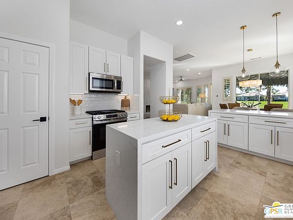 Beautifully renovated and move-in ready, this 2,500 sq ft Westerwood floor plan combines style, comfort, and resort living. Located on the 7th hole of the golf course, it offers privacy, sweeping mountain views, and lots of natural light. Enjoy two bedrooms plus a den, three baths, dual living areas, kitchen and fireplace, custom built-ins, and plantation shutters throughout. Outdoor living shines with a covered patio, enclosed front porch, and inviting private pool and spa. With a laundry room, golf cart space, and new tankless water heater, every detail is in place. Heritage Palms, a premier 55+ community, offers a resident-owned championship golf course, vibrant social clubs, and a prime location near shopping, dining, and all the best of the Coachella Valley.