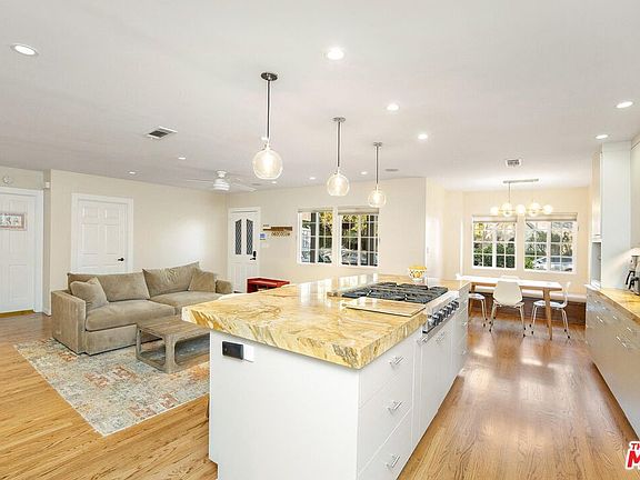 Nestled on a picturesque tree-lined street in the highly sought-after Colfax Meadows, this 4BD/3BA single-story home offers an exceptional blend of warmth, comfort, and modern convenience. Step into the light-filled, expansive living room, where rich, hardwood floors and warm, inviting tones set the stage for gatherings. The space seamlessly connects to a gourmet kitchen, complete with a Viking four-burner gas cooktop and double wall oven, a generous center island, ample cabinet/counter space, and a cozy dining nook. Down the hallway, the family room is the perfect retreat for relaxing evenings, featuring a beautiful tile fireplace with a mantel, skylights, and French doors that open to the patio, creating a wonderful indoor-outdoor flow. The primary suite is a tranquil haven, a walk-in closet, private backyard access, and an en-suite bathroom with adual vanity, step-in shower, and spa-like jetted bathtub. An upstairs multi-use loft provides the ideal space for a home office or creative studio. The additional three bedrooms are all positioned closely to one another, with one offering its own en-suite bathroom and step-in shower. Step outside to your own private oasis, where lush trees surround a serene backyard. Savor sunny days by the sparkling swimming pool with an attached spa, or host gatherings on the charming, intimate patio. The two-car detached garage is just waiting to be converted to an ADU. Additional features include a value-enhancing and money-saving solar energy system, security cameras, and an expansive driveway with additional parking spaces. This home is located within the highly esteemed Colfax Charter and Carpenter Community Charter School Districts and is just minutes from the vibrant shopping and dining scene along Ventura Boulevard. It offers the perfect combination of classic charm and an unbeatable location.