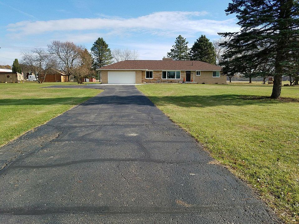 1760 sq ft brick home on 2.5+ acre 3 beds, 2 baths, new kitchen, roof, flooring, doors and triple pane windows. Fireplace on upper and lower level. Large open Kitchen and Dining Room area. Spacious Living Room with large picture window. Slider in dining area to large deck. Full basement with some areas partially finished. New well 2015. Natural gas boiler heat. Country setting just outside of town “Stockbridge Township”. Pole barn and sheds in back, very spacious front and back/side yards. Buyers responsible for all local and county inspections.