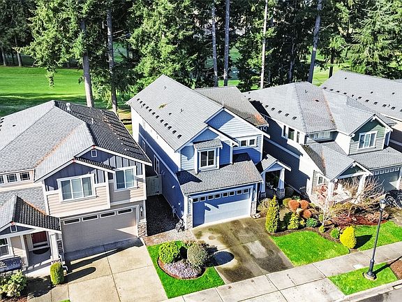Assumable VA Loan at 3.25% ($380K!) – Save Thousands! Enjoy breathtaking golf course views from this immaculate, move-in ready 4-bed + den + bonus room home in desirable Campus Peak by Rob Rice Homes. With 2,385 SF of smart living space, this home features a chef-inspired kitchen with quartz countertops, full tile backsplash, large island, & rich espresso cabinetry that flows into the open-concept dining and living areas. Wake up to fairway views in your serene primary suite with a 5-piece bath & walk-in closet. The upstairs bonus room offers space to relax, work or play. Outdoor living shines with covered front & back patios overlooking the 1st and 9th holes. Nestled on a quiet cul-de-sac - this is the one you've been waiting for!
