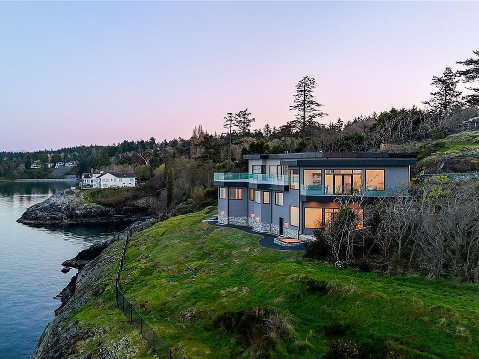 NO GST! Welcome home to a realm where the sea meets the sky and luxury meets nature. This oceanfront masterpiece in Saanich’s prestigious Arbutus neighborhood offers over 5,000 sqft of luxurious living. Perched on 1.5 acres with 350 feet of frontage, this residence revels in a 270-degree kaleidoscope of views stretching from Ten-Mile Point to the Southern Gulf Islands. The open-concept design features a sleek kitchen w/pristine white cabinetry, a large island, and floor-to-ceiling glass doors framing breathtaking vistas. The 470-sqft primary suite is a serene retreat w/a spa-inspired ensuite, freestanding tub, & vast windows capturing the ocean views. Four additional bedrooms & five bathrooms ensure ample space for family & guests. High-end finishes, a neutral palette, and elegant details create a timeless ambiance. W/ potential for a pool, guest house, or extensive custom landscaping, this abode offers the perfect harmony of urban convenience, natural beauty, & refined living.