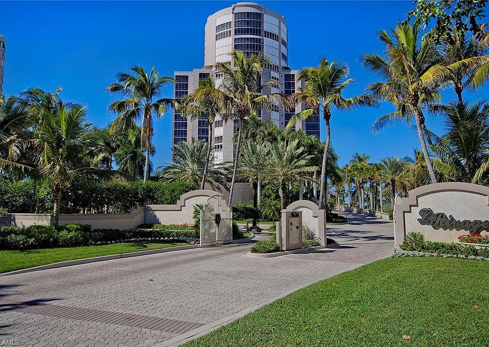 Sunrise to sunset views are adored from this south-side residence! This home in the sky features 6,062 square feet of living space with four bedroom suites, four full and one half baths, library, great room, formal dining area and family room. Updates include a bar with wine storage, gourmet kitchen, large island and butler's pantry and primary bath area. Three lanais, generous closets, split bedrooms, custom millwork and stone floors throughout are just some of the wonderful highlights. Building specifications include floor-to-ceiling walls of glass, 10-foot ceilings, 8-foot doors, gas cooking, a water detection system and more. Le Rivage offers the complete luxury lifestyle, with amenities that include 24-hour front desk attendant, private elevator entry, saline pool and spa, renovated lobby level including social room with full catering kitchen, top-notch fitness room, two Gulf-view guest suites, three parking spaces, plus air-conditioned and beach storage. The Village on Venetian Bay is closeby and offers wonderful dining and an eclectic mix of specialty retailers. Park Shore residents may purchase or lease a boat dock located on Venetian Bay (subject to availability).