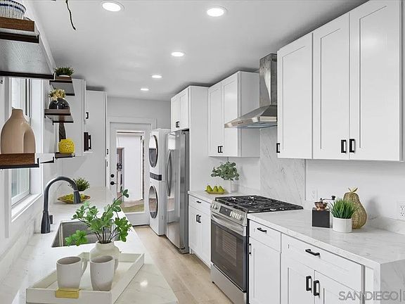 Fully renovated bungalow blending modern elegance with Japanese-inspired design. Exterior upgrades include new roof, exterior paint, plumbing, and landscaping. Inside, enjoy a redesigned kitchen with quartz countertops, quartz backsplash, and stainless steel appliances. The spacious primary bedroom has been thoughtfully redesigned with a new sliding door that opens to a private deck—your personal outdoor sanctuary. The expanded en-suite bathroom features a walk-in shower with a lighted shampoo cavity, modern fixtures, and a large walk-in closet for effortless organization. Updated hallway bath with quartz vanity and smart layout. Additional highlights: AC splitters, fireplace, recessed lighting, retextured ceilings/walls. Thoughtfully designed for comfort, style, and tranquility.
