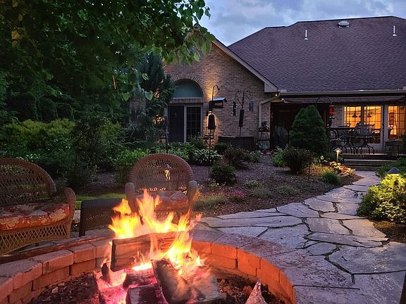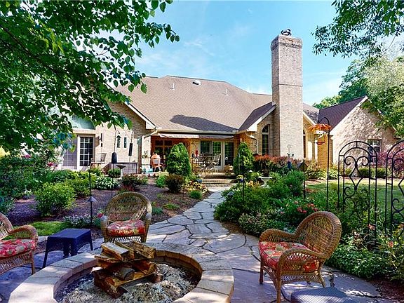 Spectacular solid brick home in Asbury Woods Estate, features: Lg. Master w/FP, vaulted ceiling, en-suite bath, & walk-in closet; 3 add'l BRs, 1 en-suite & 2 w/Jack-n-Jill bath; stunning dining rm w/tray ceiling & pillars; huge eat-in custom kitchen open to family rm w/beautiful brick FP; phenominal theater room w/wet bar area "WOW"; huge bonus rm; 1st FL laundry; spacious office w/built-ins; outside is a covered patio/lanai & patio w/fire pit overlooks meticulously landscaped "English" garden.
