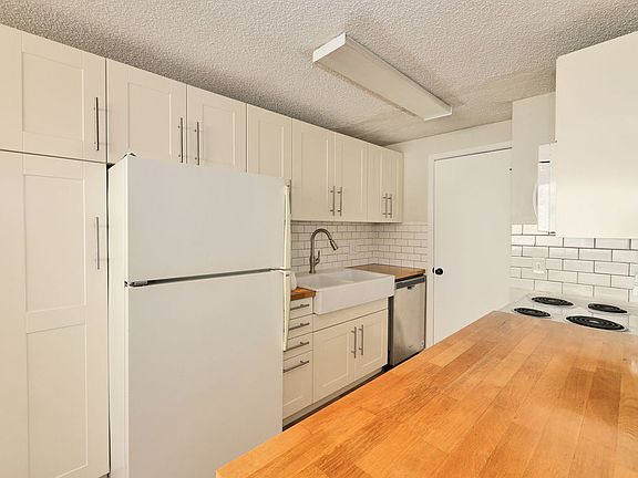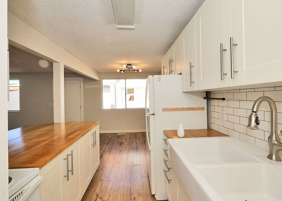 This Meadowbrook Condo is ready for its next owner. Kitchen has white shaker cabinets, butcher block countertop, and farm-house sink. Living area with laminate flooring, large windows, and brick accent wall. Main bedroom with ceiling fan & walk-in closet. Upstairs bathroom updated with ship lap style walls, vanity with porcelain sink, and bronze bathroom hardware.