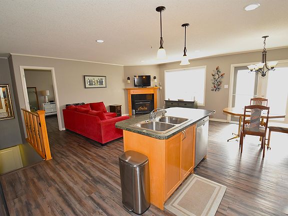 Exceptionally Designed 6 Bedroom Bungalow in a Great Neighborhood!! Welcoming Front Covered Deck to Relax and watch the Sunsets. Open Concept Main Floor Shows Kitchen w/Center Island, Corner Pantry, Pot Drawers, & Patio access off the Dining Room. Corner Mantel Fireplace in Living Room w/thermostat control. Spacious Primary Bedroom, Walk-in Closet,& Beautifully Upgraded 3PC Ensuite. Front Hall Separates two other Bedrooms, 4PC Bath, & Main Floor Laundry Room. Fresh Paint Updates (Fresh Painted Front Door) and Vinyl Flooring throughout Home. Fully Finished Basement with Huge Family Room & Roughed-in Waterline for Wet Bar. Three Large Bedrooms have Walk-in Closets. Also a 4PC Full Bath, Utility Room, & Storage Room under the stairs. Plenty of Space in this Family Home. Double Attached Heated Garage, Drain, 16' x 8' Garage Door, Ceiling 11 Ft H, Driveway 34'L x 20'W. South Facing Two Tiered back Deck, Good sized Backyard with a Large Shed for Storage. Close to Downtown and Schools. Nice Place to Call Home!!!