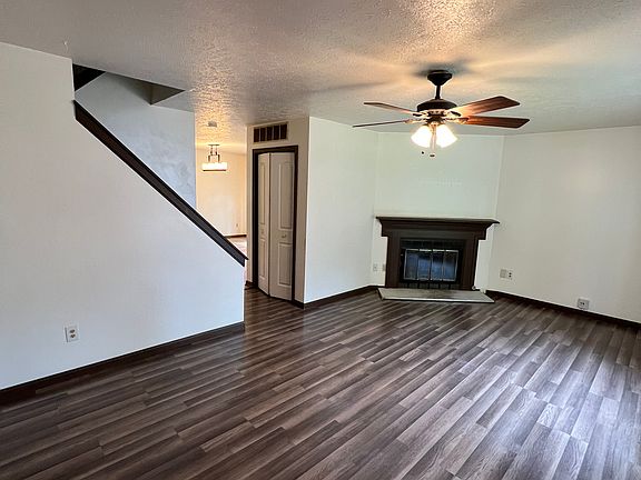 Right side of duplex in a small community. First floor has a large living room with a fireplace, kitchen with large dining area, bar seating, and a conveniently located half-bath. Sliding doors off of the dining area lead into a nice, shaded patio area. Upstairs has 3 large bedrooms and 2 full baths. The basement has plenty of storage space. Attached 2-car garage and Central A/C. 1 Year Lease. Tenants are responsible for all utilities.