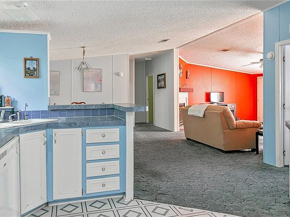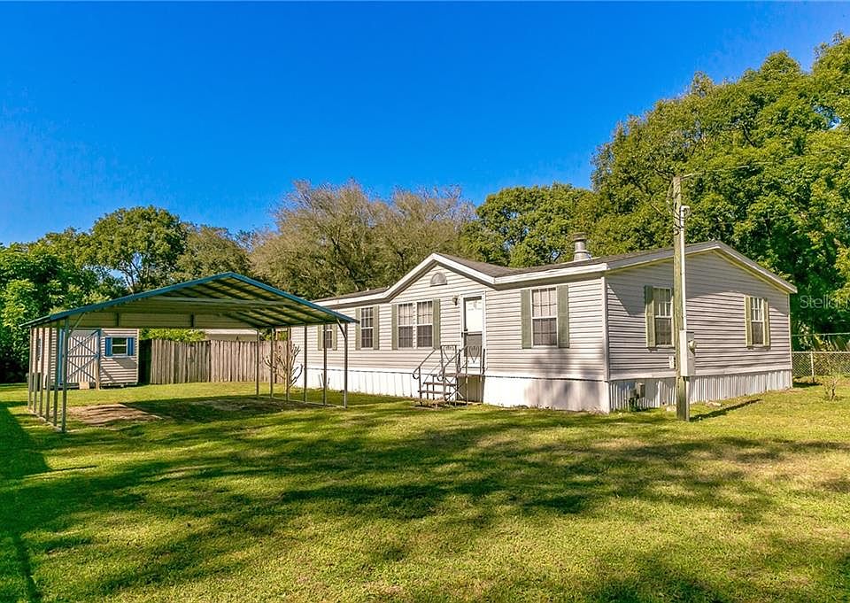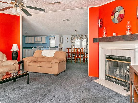 Move-in ready, 3 bedroom, 2 bath home on over 1/4 acre in Zephyrhills. This 1,488 sq.ft. mobile home features new a/c, an open floor plan, wood burning fireplace, fenced yard, and carport. The 17x15 living room is open to the dining room and kitchen and features a beautiful, wood-burning fireplace. The kitchen offers extra eating space with a 7x11 breakfast nook. Down the hall, you'll find the master suite with en-suite bathroom featuring a garden tub and separate shower. Two guest bedrooms and another full bathroom are located on the opposite end of the home. Outside, relax on the private back deck. Other outdoor features include a 2 car carport and storage shed. Conveniently located near Zephryhills shops, restaurants and medical facilities.