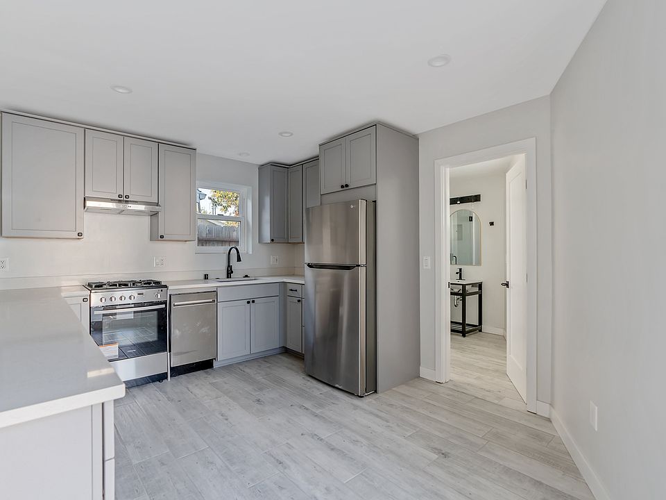 This beautifully renovated back house, one of two homes on the lot, offers a harmonious blend of comfort and style. The open-concept living area is adorned with modern finishes, including new appliances and sleek countertops, creating an inviting space for relaxation and entertaining. The primary suite is generously sized, bathed in natural sunlight, and provides a spacious retreat. Enjoy year-round comfort with central heating and air conditioning. Step outside to access the shared pool, perfect for unwinding on warm days. Situated in a desirable neighborhood, this home offers convenient access to local amenities, dining, and entertainment options. Don't miss the opportunity to make this move-in-ready gem your own! The tenant is responsible for gas and electric.
