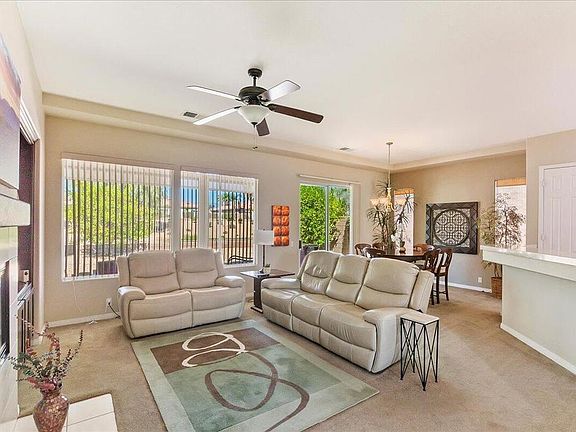 Welcome to Corte Del Oro in the sought-after Esplanade development inLa Quinta where comfort, convenience, and charm converge. This well-maintained home sits on an elevated lot with sweeping southwest-facing views of the mountains and lush greenbelt. Inside, you'll find three spacious bedrooms plus a den, that can also be used as a bedroom, a cozy fireplace in the living room, and a newer water heater already in place. Step outside and enjoy the Alumawood awning with manual shadesa'perfect for relaxing afternoons or entertaining friends. With a two-car garage and being mostly furnished, this home is ready for you to move in and make it your own. Just minutes from shopping and dining at Fred Waring and Jefferson, and only 8 minutes to major retail centers. La Quinta is truly the gem of the desert and this home lets you experience it all.