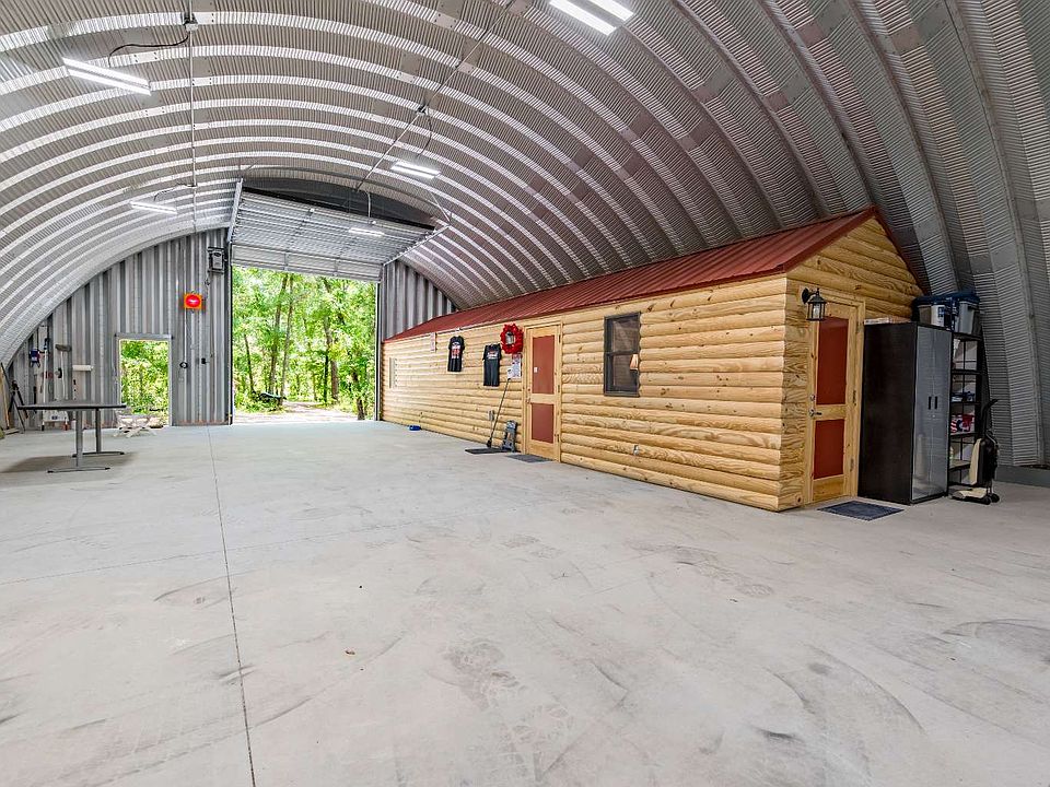 This one-of-a-kind property on 1.85 fully fenced acres features a massive 42x60 Quonset Hut with 2,500+ sq ft of well-designed space, including a cozy 500 sq ft log cabin-style living area inside. Quality finishes include custom Southern yellow pine cabinetry, quartz countertops, impact windows, LVP flooring, PEX plumbing, stainless appliances, plus a transferable termite bond. Built on a 6-inch slab and rated to 180 mph winds, it’s engineered to last. Enjoy a full-service 50-amp RV hookup inside and out, a 400-amp electric service, and an oversized septic ready for future expansion. Perfect as a unique home, luxury retreat, or Airbnb investment. Private community ($175/year POA) provides access to 10 parks, 2 boat ramps, and endless Ichetucknee, Santa Fe, and Suwannee river adventures.