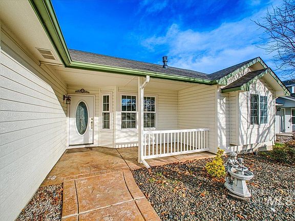 Welcome to this well-maintained single-story home with 4 bedrooms and 2 bathrooms in the heart of Meridian. The location of this home is ideal, with close proximity to The Village, Albertsons Market Street, healthcare facilities, restaurants, and easy access to the freeway. The home features an open and bright floor plan with all new carpet throughout. The spacious kitchen is connected to the dining room and living areas. The split bedroom layout provides individual quiet space and privacy. The sale also includes the refrigerator and W/D. Moving outside, you can appreciate the covered patio and spacious yard, perfect for entertaining. The low-maintenance landscaping, complete with automatic sprinklers, makes upkeep a breeze and even includes a lawnmower. Hurry and take a look before it's gone!