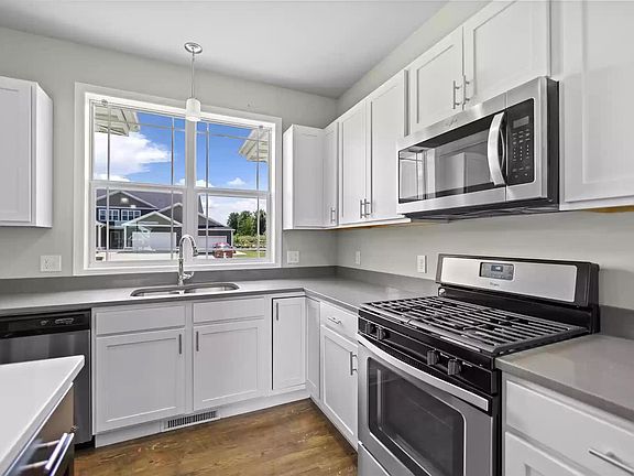 1990+ Sq ft custom ranch-style duplex unit. 3 bedrooms (2br main floor, 1br LL), 3 full bathrooms (2br main floor, 1br LL), finished LL with big family room and walkout sliding door to patio/backyard, features inc. 9 ft ceilings, quartz island-top, custom built white cabinets with java color island, tray ceiling over island, LVL flooring, carpet in all bedrooms and LL, stainless steel whirlpool appliances including washer/dryer, gas fireplace in the great room with tray ceiling, office/gym space LL, energy efficient, trek deck, open backyard, oversized 2 car garage, plenty of storage space on LL and a fantastic layout! Located in desirable Wolf Hollow neighborhood, minutes away from Windsor elementary school, 15 minutes away from Madison, shops, restaurants, movie theater, etc. Deposit plus first and last month's rent required to move in