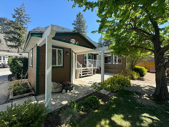 Riverfront living at it's finest! This 2-bedroom, 1-bathroom park model sits on one of the largest corner lots in the park and features a private riverfront location. Start your day with coffee on the deck or relax on the patio/gazebo area next to the low-maintenance Koi pond and tranquil waterfall. Entertain friends and family in the spacious 15x16 addition and large dining area, perfect for gatherings. Enjoy the convenience of a stackable washer and dryer and ample storage in the handy shed for all your seasonal items. The resort boasts superb amenities, including an indoor heated pool, spa, gym, clubhouse, guest suites, woodworking and ceramics buildings, walking trails, an off-leash pet area, a community orchard, and more. Located just 10 minutes west of Keremeos, this central location is ideal. The monthly fee is $390.27. Call today for a tour of this home and its fantastic amenities. Offering year-round living with no age restrictions.