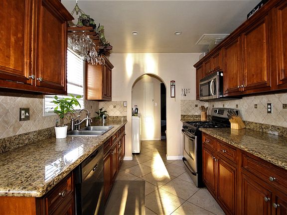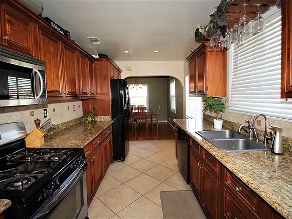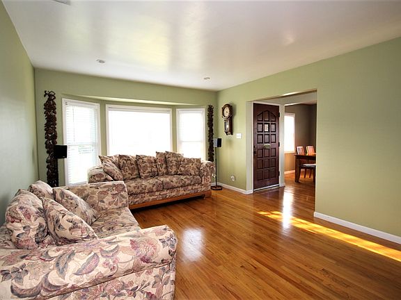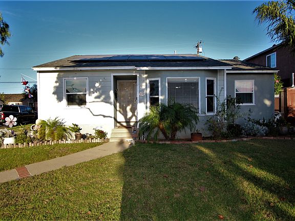 Upgraded Home in desirable Lakewood Mutuals. This Ranch style home sits on a 5479 sq ft corner lot. The property offers approximately 1572 sq ft of living space. This is a 3 bedroom 1 bath all in a single story. Enjoy the benefits of solar panels professionally installed on the roof in addition to granite countertops, Natural Stone tile work, Stainless Steel Appliances, Hardwood Floors, Formal dining room with bay window, and an inside Laundry room off of Kitchen. Bedrooms have spacious closets. There is a bonus room between attached garage and kitchen not featured in the photos. This is a huge feature of the property with sliding glass door exiting to the backyard. Backyard has a large patio great for entertaining. The photos do not do the home justice.
