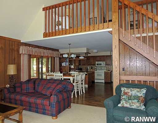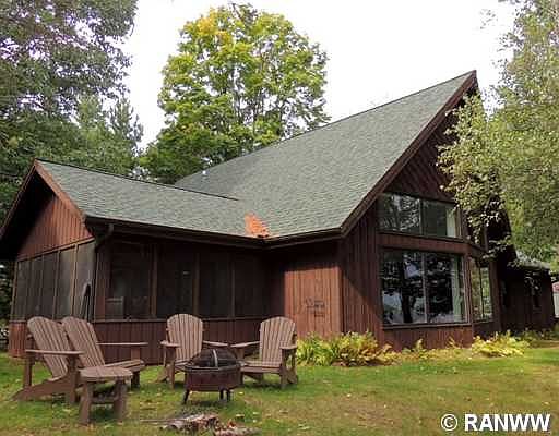Beautiful cedar-sided home and 2 BR/full bath, heated guest cottage. Home features tiled fireplace with wood stove, spectacular great room lake views, a 2 BR loft with half bath and a lake view 16x14, 3-season porch. Level, landscaped lot, easy lake access and 222 ft. of sand-bottom frontage near the end of Duck Point on Garden Lake of Lake Namekagon. Zoned RRB.