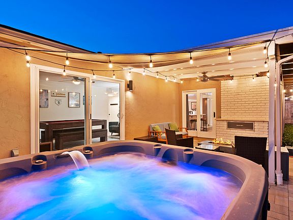 Feel at home in this spacious Clairemont retreat, featuring four bedrooms, two living rooms, and two bathrooms, providing ample space for relaxation and entertainment. Enjoy the backyard equipped with a spa, grill, and fire pit, perfect for gatherings. The home also includes a fully equipped garage with a washer and dryer, a pool table that converts to a ping pong table, and a fully equipped kitchen. With air conditioning and an indoor fireplace, comfort is guaranteed year-round.