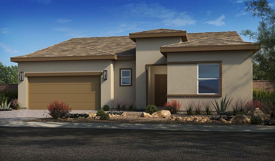 Welcome to the Primrose at 4355 E Murlo Rd in Ovation at Mountain Falls. This thoughtfully designed home offers 1,784 square feet with three spacious bedrooms, two bathrooms, and a two-bay garage with dedicated golf cart storage. The open-concept layout connects the gathering room, dining area, and kitchen to a large covered outdoor living space-perfect for entertaining or relaxing. The split floor plan ensures privacy, with the serene primary suite tucked away from the guest wing. Bedrooms two and three share a full bath, creating a comfortable retreat for visitors or family. Additional Highlights include: 8' interior doors, door at primary bathroom to laundry room, undermount single basin stainless steel kitchen sink and medicine cabinet at second bath. Photos are for representative purposes only.