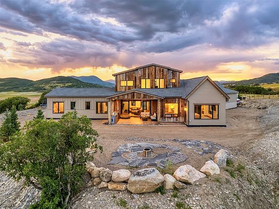 7 acres within the city of Steamboat Springs, Colorado. Just three miles from downtown Steamboat, this newly constructed mountain modern residence sits on 7 acres, with no covenants or HOA, offering rare freedom and flexibility. Built in 2025 as the developer’s personal home, the design blends rustic textures with clean lines, vaulted spaces, and seamless indoor-outdoor living. Clad in reclaimed barn wood, the main level centers around a dramatic great room with soaring ceilings and views of the Steamboat Ski Area. The kitchen is the heart of the home with a Taj Mahal granite waterfall island, premium appliances, and direct access to a covered patio with a built-in grill for year-round entertaining. Four of the five bedrooms are located on the main level, each with its own private bath. The primary suite is a restorative retreat, with a steam shower featuring three shower heads and a dedicated washer/dryer hookup for added convenience. A fifth bedroom and full bath sit above, with space to convert a portion of the loft into a comfortable sixth bedroom if desired. Beyond the home, the opportunities are unmatched. An 1,800 SF four-car garage accommodates gear and vehicles, while a massive, temperature-controlled basement offers exceptional storage. Plans for a shop on the lower 1.5 acres are included and approved, and the property also allows for an additional dwelling unit (ADU). With a snowmelt apron for winter ease and plenty of room for campers, trailers, boats, and more, this is mountain living with room to roam, just minutes from downtown shopping, dining, and recreation.