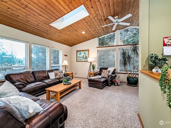 Well-crafted home located on quiet street in the ever popular Lynnsfield neighborhood. Featuring modern amenities such as a heat pump and tons of storage, this well-maintained home boasts a new roof in 2017, fresh exterior paint, beautifully updated kitchen with solid surface recycled glass countertops, kitchen-aid appliances, & oak floors. The cedar lined, vaulted ceiling w/skylights adds ample natural light to the upstairs living area. The lower level features an ideal media room, full bath & indoor hot tub room - perfect for relaxation year-round. Backyard is private and peaceful. The oversized 768 sq foot garage is perfect for woodworker and/or hobbyist. Great Port Townsend location near Fort Worden, North Beach and Cappy's trails.