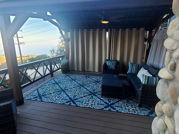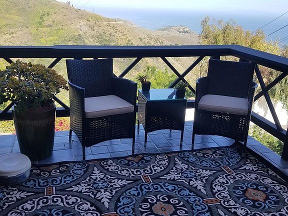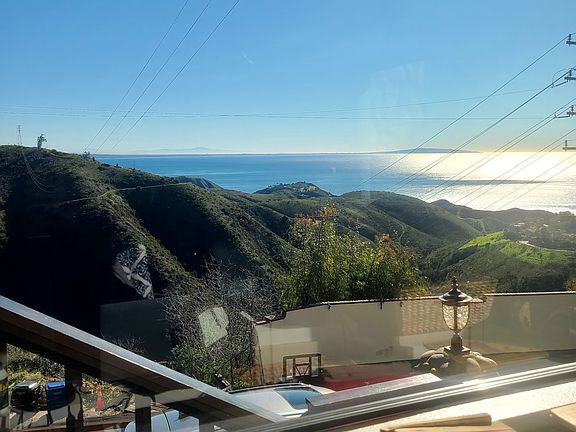 Incredible views from the Santa Monica mountain top in Malibu overlooking the Queen's Necklace, Palos Verdes and Catalina!! Ocean view from the Santa Monica Pier all the way around to Catalina! Beautiful sunrises! Central Malibu location 3 miles off of PCH! Main house is 2 bedrooms and 2.5 baths, living room, dining room, kitchen, gazebo and outdoor deck, stainless steel appliances, Viking range, Miele double ovens, stack w/d, freezer, etc. The bedrooms each have ceiling fans, wall to wall carpet, large closets, cathedral ceilings, sliding glass doors and balconies. 2 fireplaces, turf backyard, parking for 3 cars, storage in shed, etc. (there is a separate in-law apartment on the ground level of the house that is separately leased). Ocean views from every room!! End of quiet street. Great for Pepperdine students, roommates, etc! Semi-furnished available if needed! Landlord will consider lease until June 2026 to coincide with conclusion of school year.